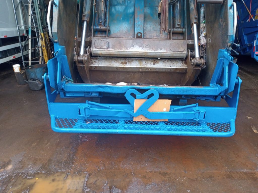Antes (caminhão com para-choque amarrado com corda, pneu careca e estribo