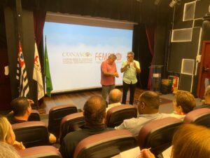 André Santos Filho, presidente do SIEMACO São Paulo e vice-presidente da FEMACO, parabenizou as entidades pelo evento e cumprimentou os presentes em nome da Diretoria Executiva do sindicato. “Quero agradecer a presença de todos aqui e dos que nos assistem pelo link ao vivo. Ficamos felizes em sediar este evento, uma oportunidade de tirar dúvidas de um texto que foi criticado de forma errada e precisa do nosso apoio”, disse.