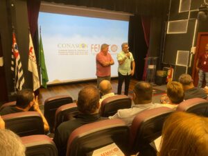 Recebendo os sindicatos para o evento, o presidente da CONASCON, Moacyr Pereira, abriu a fala agradecendo a abertura do espaço e enaltecendo a união do grupo a qual pertence. “O presidente do SIEMACO-SP, André Santos, abriu mais uma vez as portas para fazermos este evento e vem conduzindo com muita competência este sindicato, valorizando a base. E este evento vem de encontro a esse estilo de trabalho. Queremos levar conhecimento sobre o que estamos discutindo, para que os sindicatos de base entendam que precisamos nos organizar e buscar soluções para que a gente continue com essa força que temos”, disse Moacyr, que também é Diretor Tesoureiro do SIEMACO-SP.