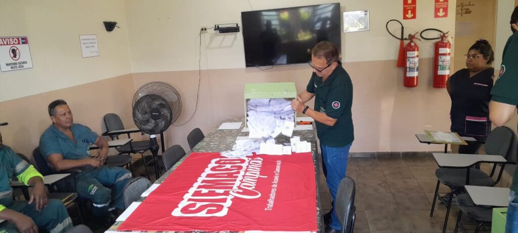 Representantes do SIEMACO Campinas estiveram, nesta quarta-feira (01/03), na organização da eleição dos novos membros da Comissão Interna de Prevenção de Acidentes (CIPA) do consórcio Camp Ambiental, responsável pela Limpeza Urbana de Campinas. Mais de 600 trabalhadores e trabalhadoras participaram do pleito, que teve o acompanhamento da equipe do sindicato, garantindo uma eleição correta e democrática.