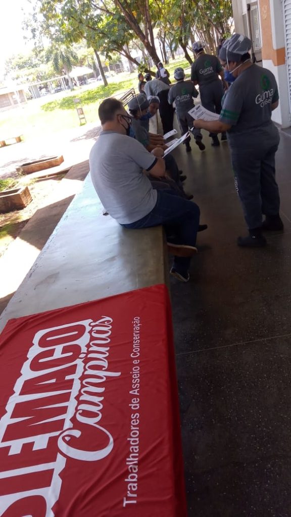 Levando informação onde o trabalhador está! Na última quarta-feira (19), o SIEMACO Campinas esteve presente na Universidade Estadual de Campinas (UNICAMP), visitando os trabalhadores da limpeza da empresa Guima que prestam serviço no local. Foram entregues o resultado das negociações coletivas com o reajuste de 10,5% no salário e de 7% nos benefícios. No mesmo dia, também foi realizada a sindicalização dos novos trabalhadores contratados.