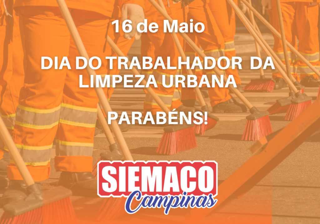 O SIEMACO Campinas parabeniza toda a categoria da Limpeza Urbana pelo seu dia, comemorado nesta segunda-feira (16 de Maio). Este sindicato tem orgulho de representar esses trabalhadores e trabalhadoras, que fazem uma atividade essencial para nossa sociedade!