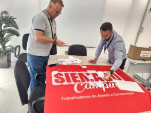 O SIEMACO Campinas participou ativamente da eleição de novos membros da Comissão Interna para Prevenção de Acidentes e Assédio (CIPA) da empresa CTRC, que faz o serviço de Limpeza Terminal Multimodal Ramos de Azevedo – Estação Rodoviária de Campinas, que ocorreu entre os dias 27 e 29 de março e envolveu os 80 trabalhadores e trabalhadoras do setor, entre auxiliares de limpeza e fiscais de terminal.