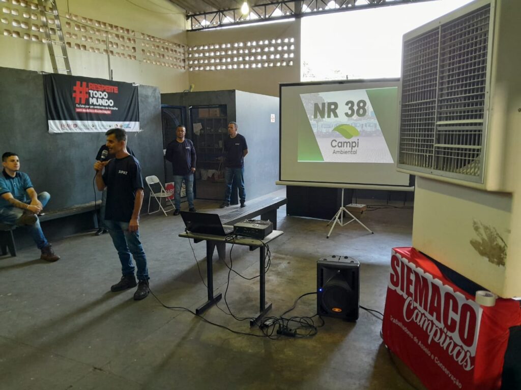 Em um movimento contínuo de apoio à saúde e segurança dos trabalhadores, o SIEMACO Campinas esteve presente na Semana Interna de Prevenção de Acidentes de Trabalho (SIPAT) da Camp Ambiental, empresa especializada em limpeza urbana, realizada nesta sexta-feira, 10 de novembro.