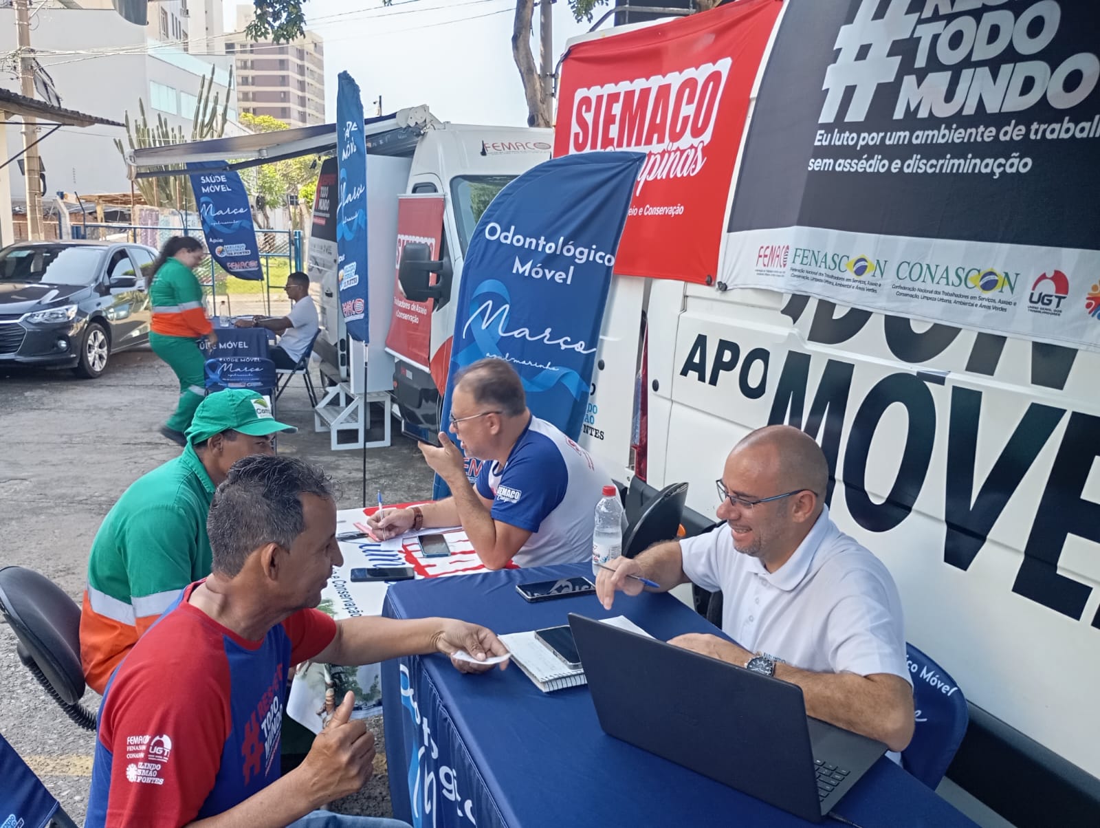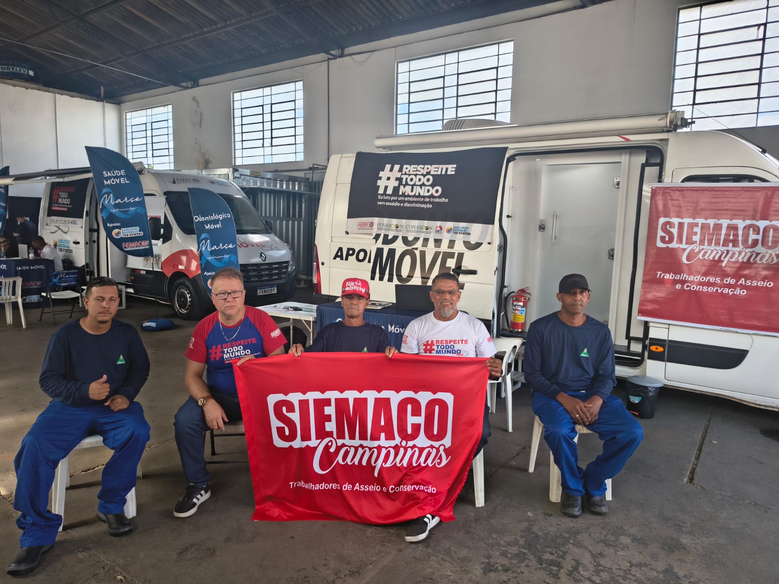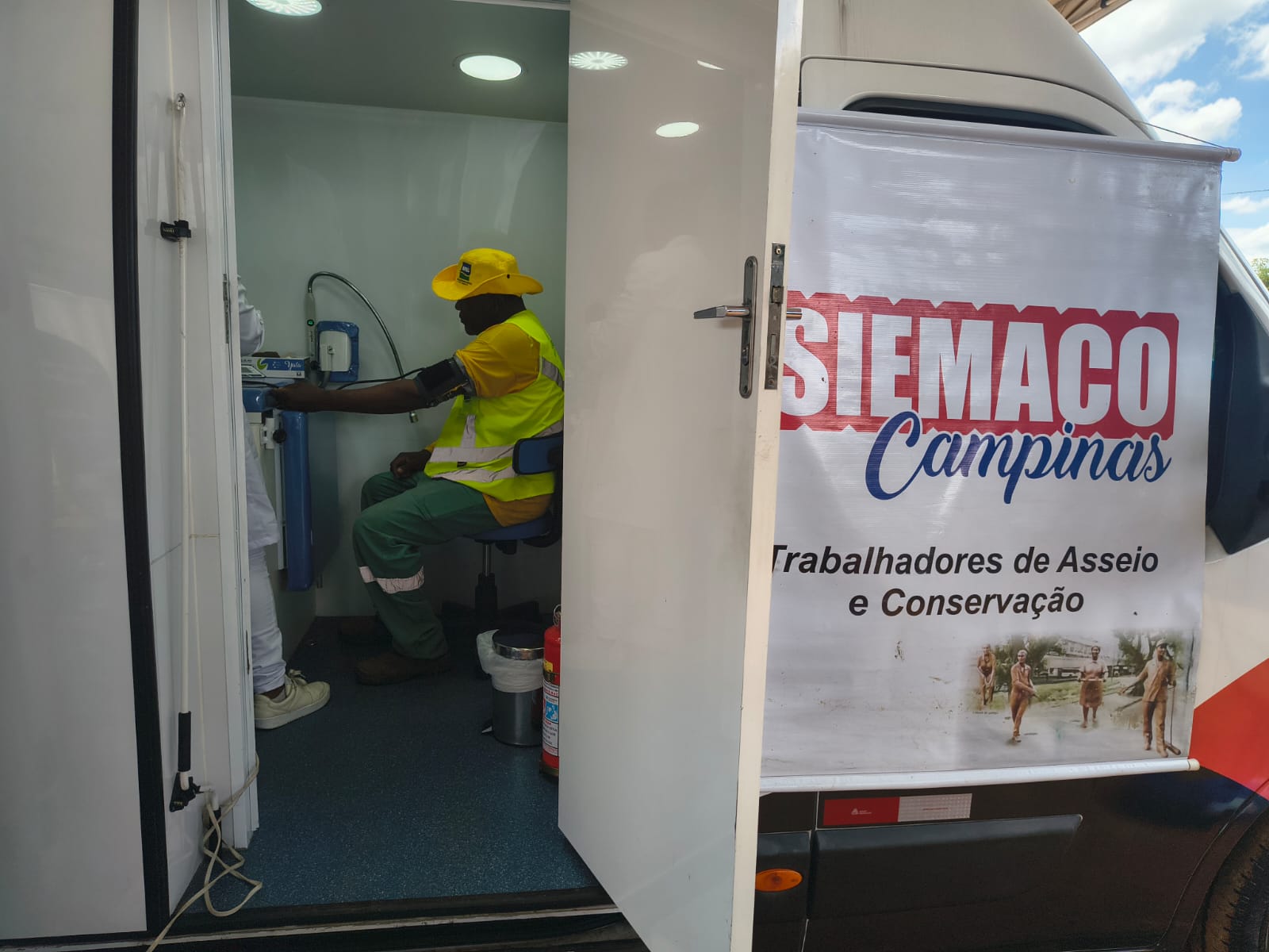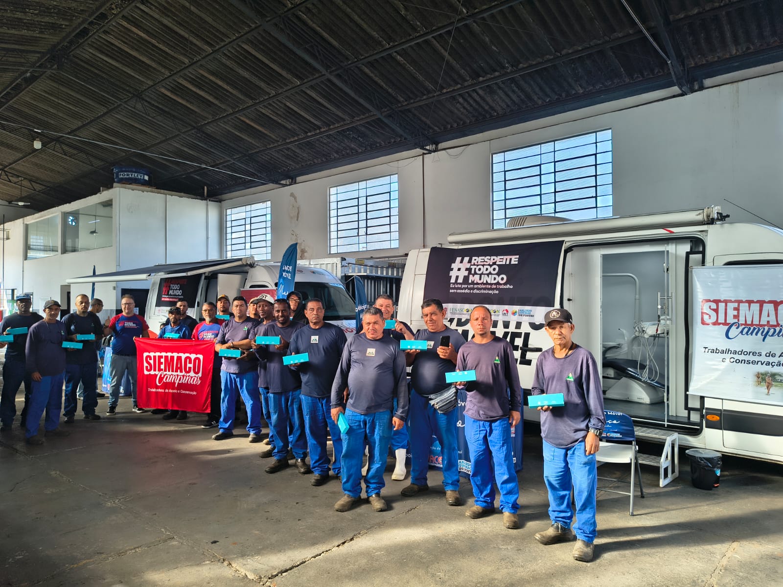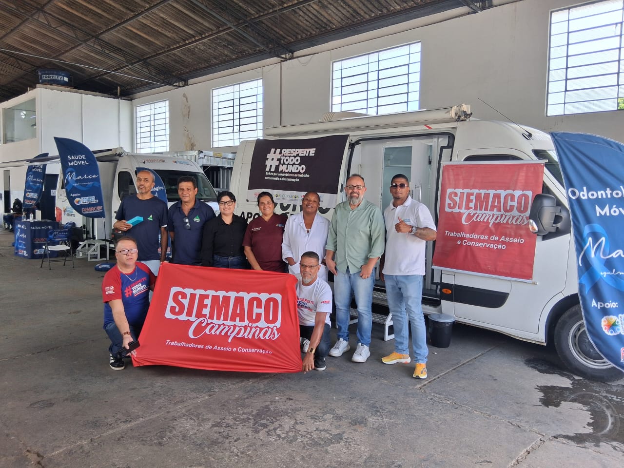 Entre os dias 2 e 6 de março de 2026, o SIEMACO Campinas promoveu mais uma ação de cuidado com os trabalhadores da base por meio da Semana de Atendimento Médico e Odontológico, levando serviços de saúde diretamente aos locais de trabalho por meio da Van da Saúde e da Van Odontológica.