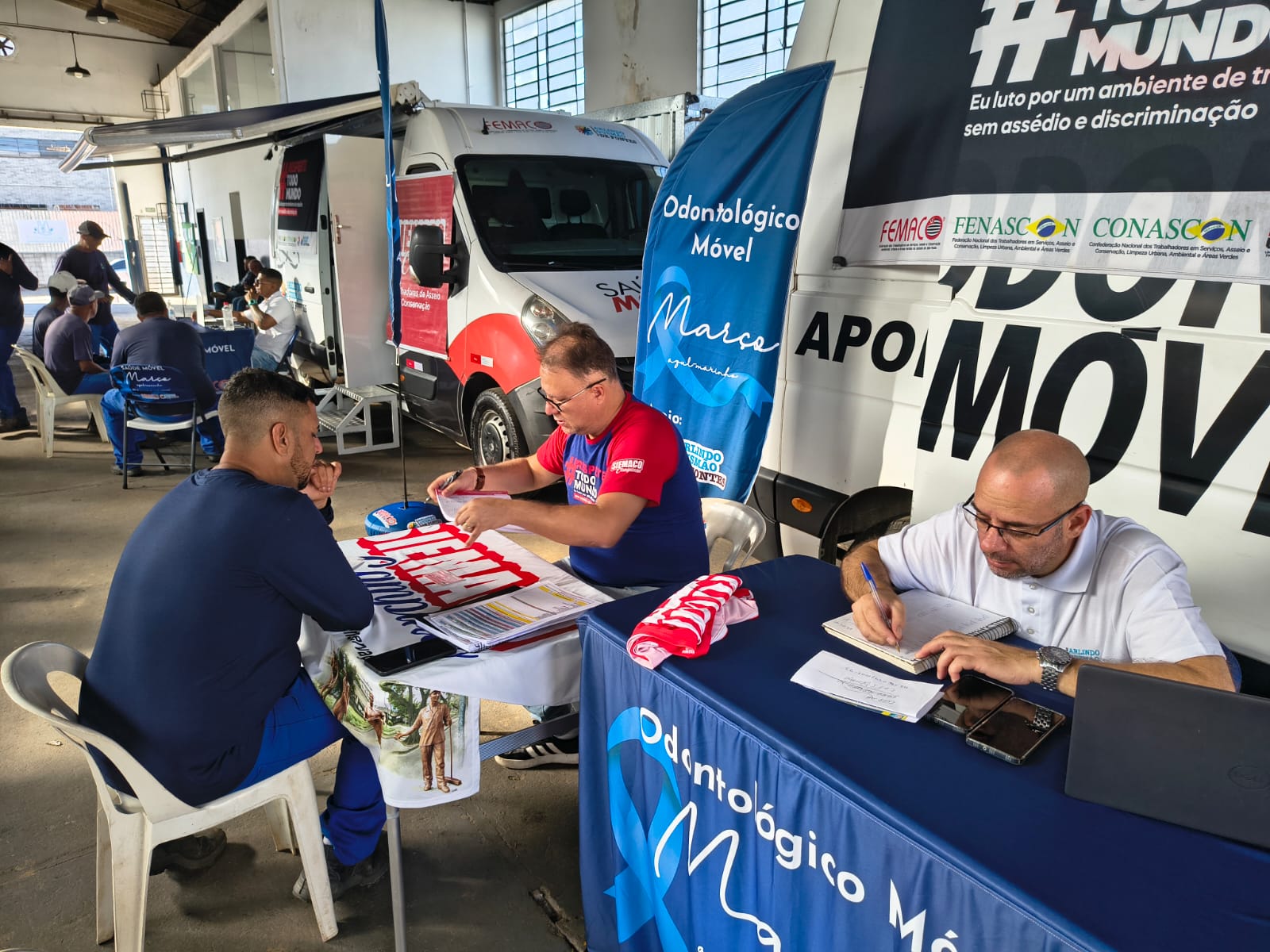 Ao todo, foram realizados 190 atendimentos, sendo 96 consultas na Van da Saúde e 94 atendimentos na Van Odontológica, garantindo acesso facilitado a serviços importantes para a prevenção e o cuidado com a saúde da categoria.