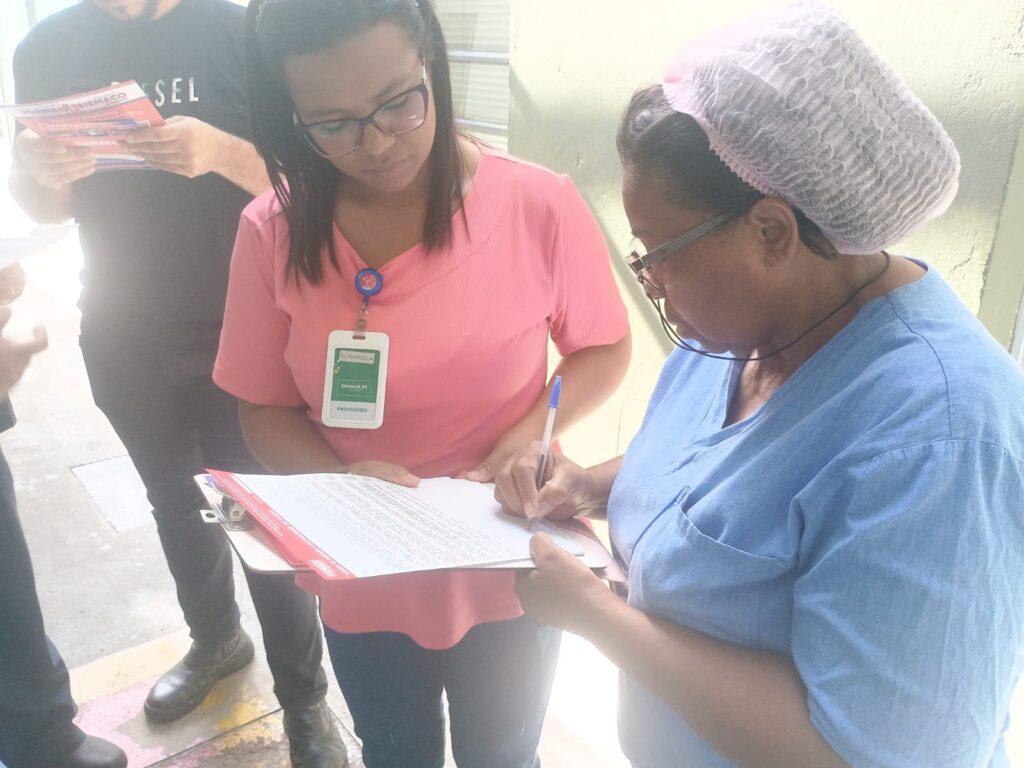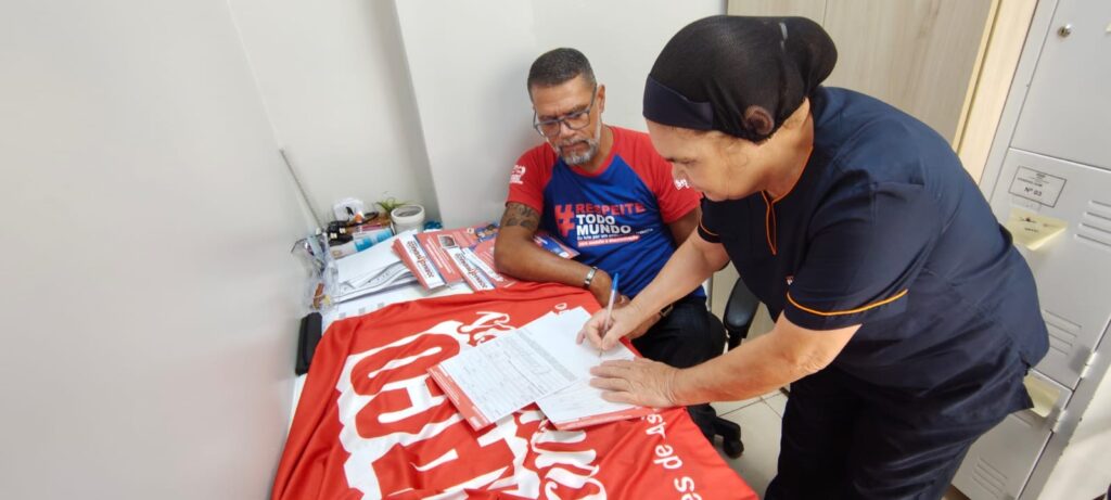 Durante as visitas, o sindicato reforçou os avanços obtidos na campanha salarial, como o reajuste no piso salarial de 8% e o aumento de 5% nos benefícios, além de destacar a importância de manter os trabalhadores informados e fortalecidos na luta por melhores condições de trabalho.