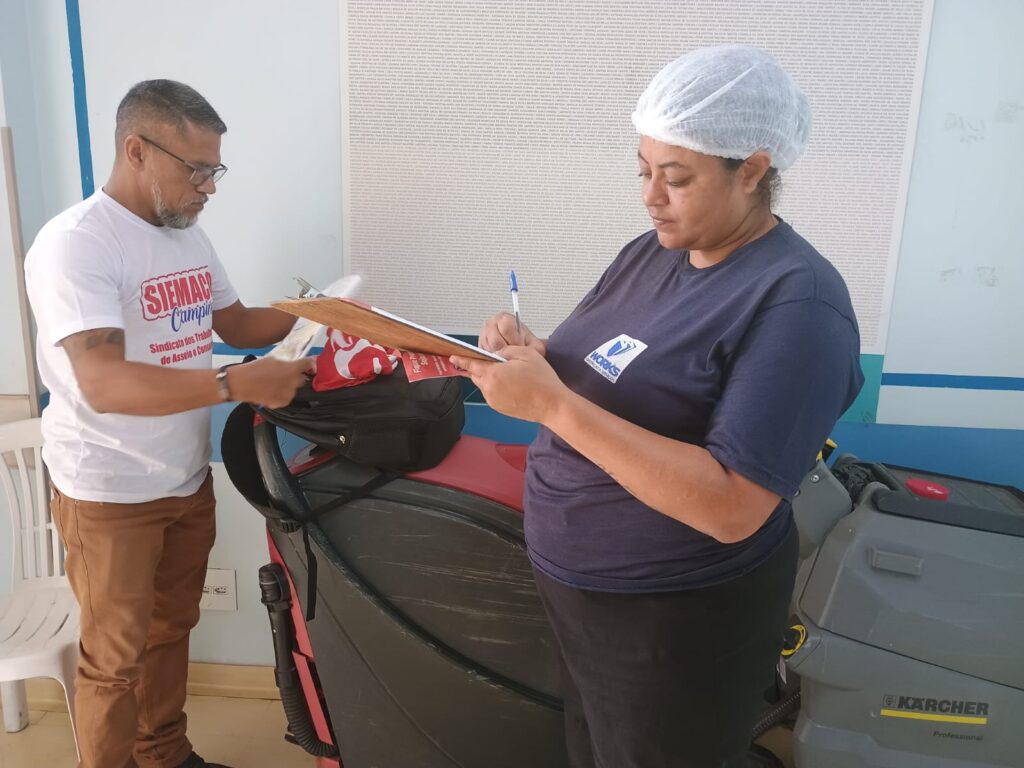 Nesta quarta-feira (13), o SIEMACO Campinas esteve no Hospital Municipal Ouro Verde para a sindicalização dos trabalhadores da empresa Works, que atuam nos serviços de asseio. Essa ação faz parte do compromisso contínuo do sindicato em fortalecer a categoria e garantir que os trabalhadores tenham acesso a uma série de benefícios exclusivos.