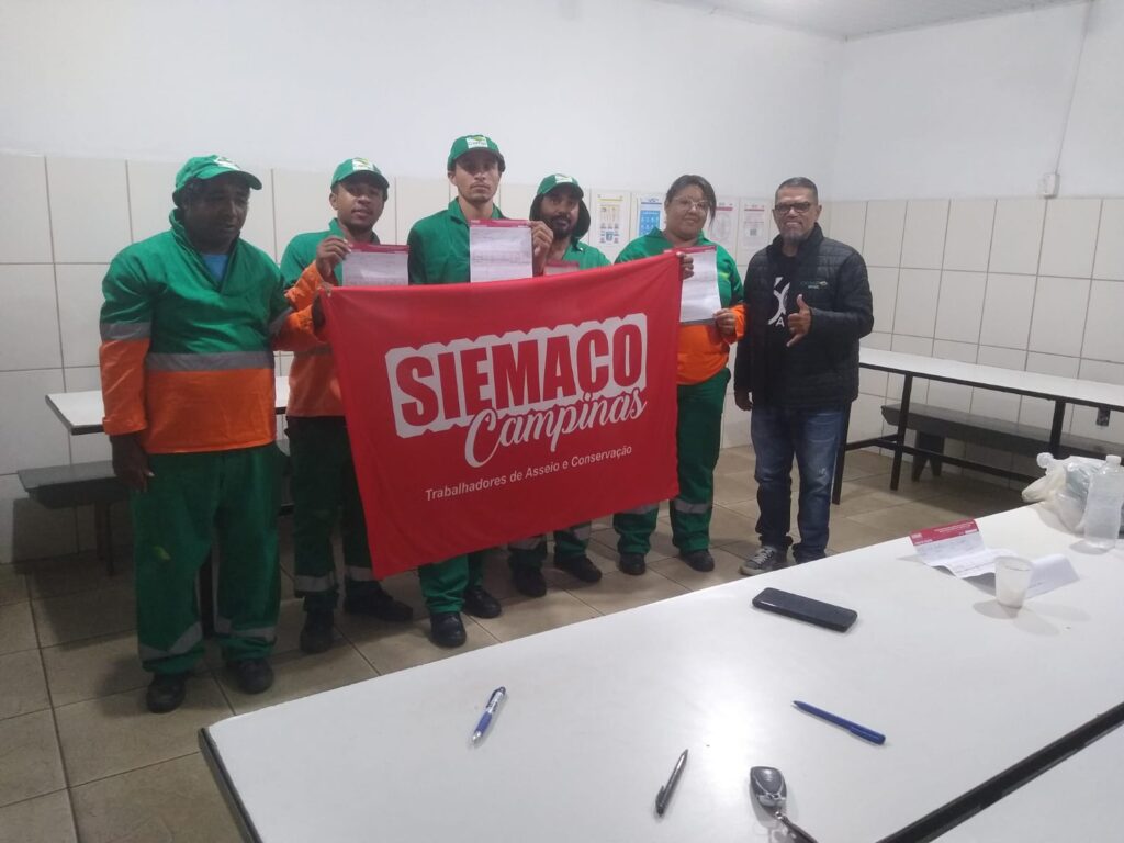 O trabalho não para! O SIEMACO Campinas esteve nesta quarta-feira (26) na empresa Camp Ambiental, responsável pela varrição do setor de Limpeza Urbana de Campinas. A equipe de base dialogou com trabalhadores e trabalhadoras, tirou dúvidas e filiou novos sócios ao sindicato, fortalecendo o trabalho sindical e oferecendo benefícios exclusivos.