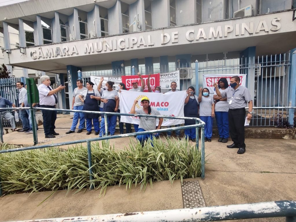 Com a falta do salário, os trabalhadores e o SIEMACO Campinas decidiram fazer uma manifestação nesta manhã (13), para cobrar da Câmara Municipal uma solução URGENTE!